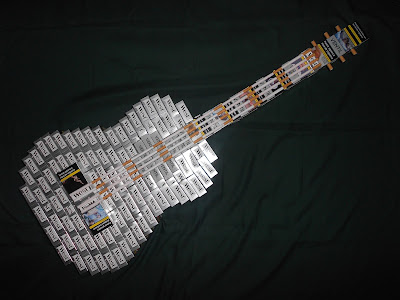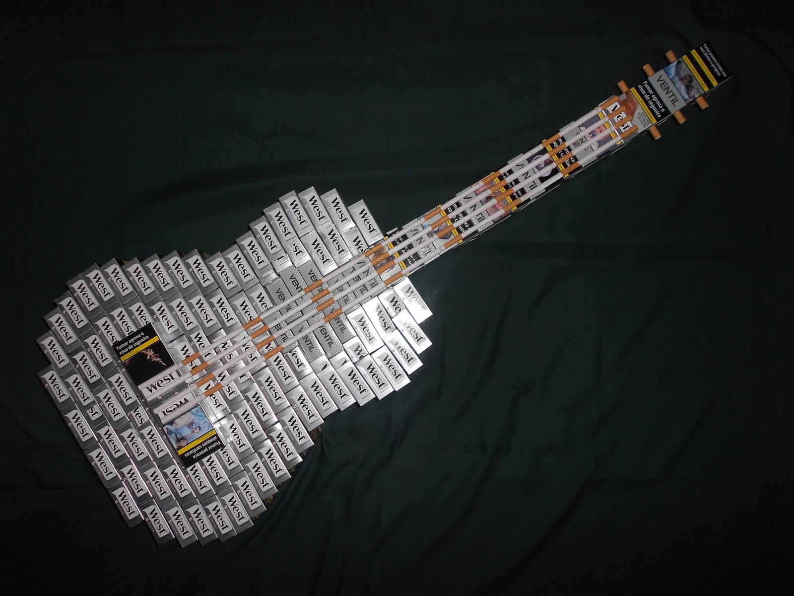 Reparem, uma pessoa que fume um maçito de tabaco por dia, ao fim de 4 meses com o dinheiro que gastou (~520 €) podia comprar uma boa guitarra. Com os maços vazios também pode fazer uma guitarra como esta em que utilizei 125, mas não é tão saudável......
